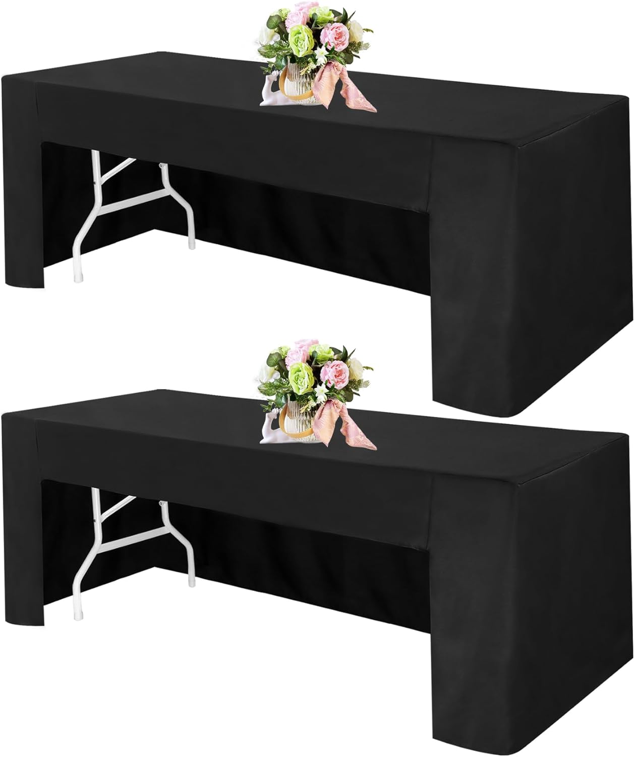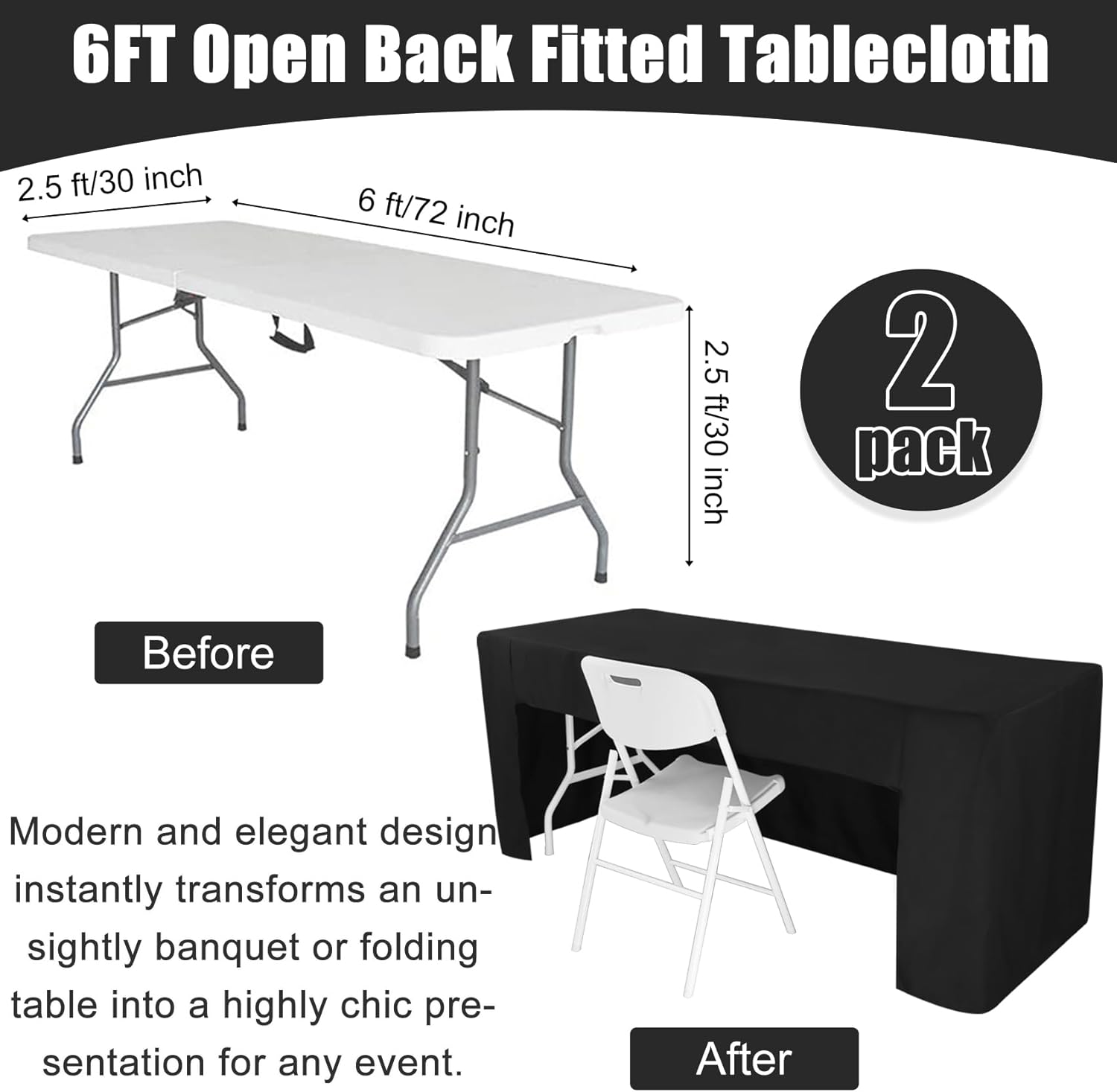 2 Pack 6FT Open Back Fitted Tablecloths, Black Table Clothes for 6 Foot Rectangle Tables, 72 x 30 Inch Washable Polyester Fitted Table Cover for Parties, Wedding, Banquet, Trade Show (Black)