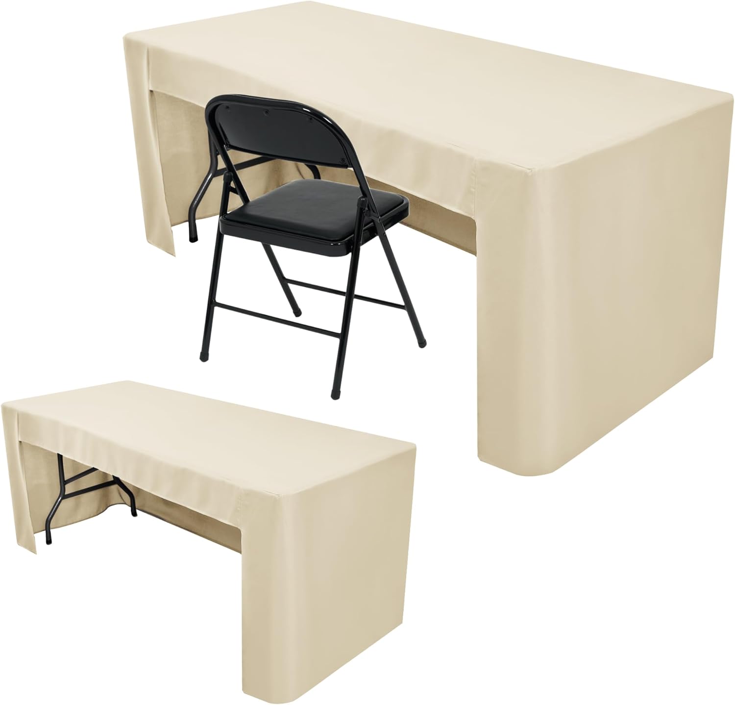 2 Pack Beige 6ft Table Cloth Fitted-Open Back Folding Fabric Table Cover Washable Table Cloth for Rectangular Table, Trade Show, Parties, Wedding, Banquet, Buffet, Jewelry Shows, Craft Fair