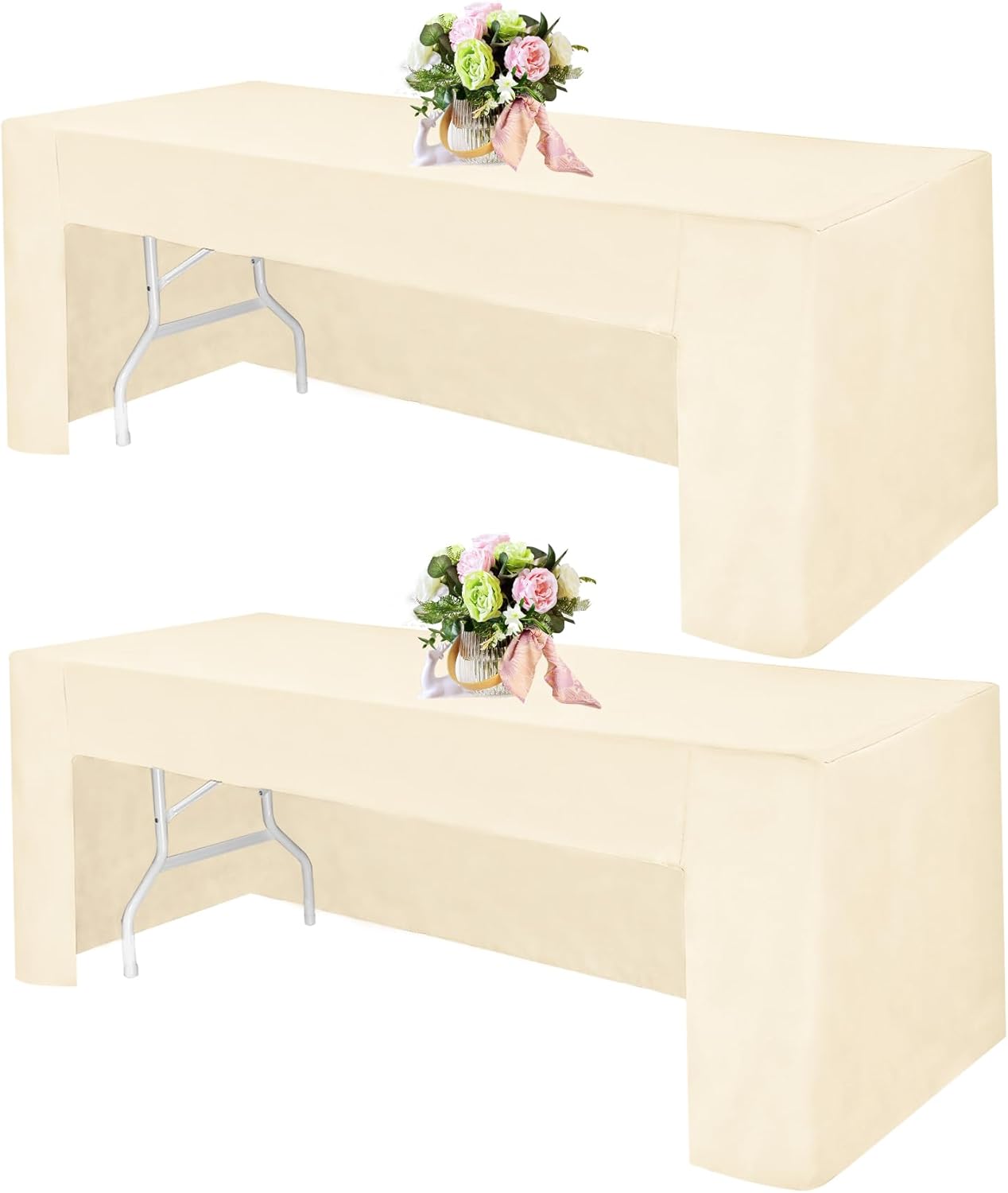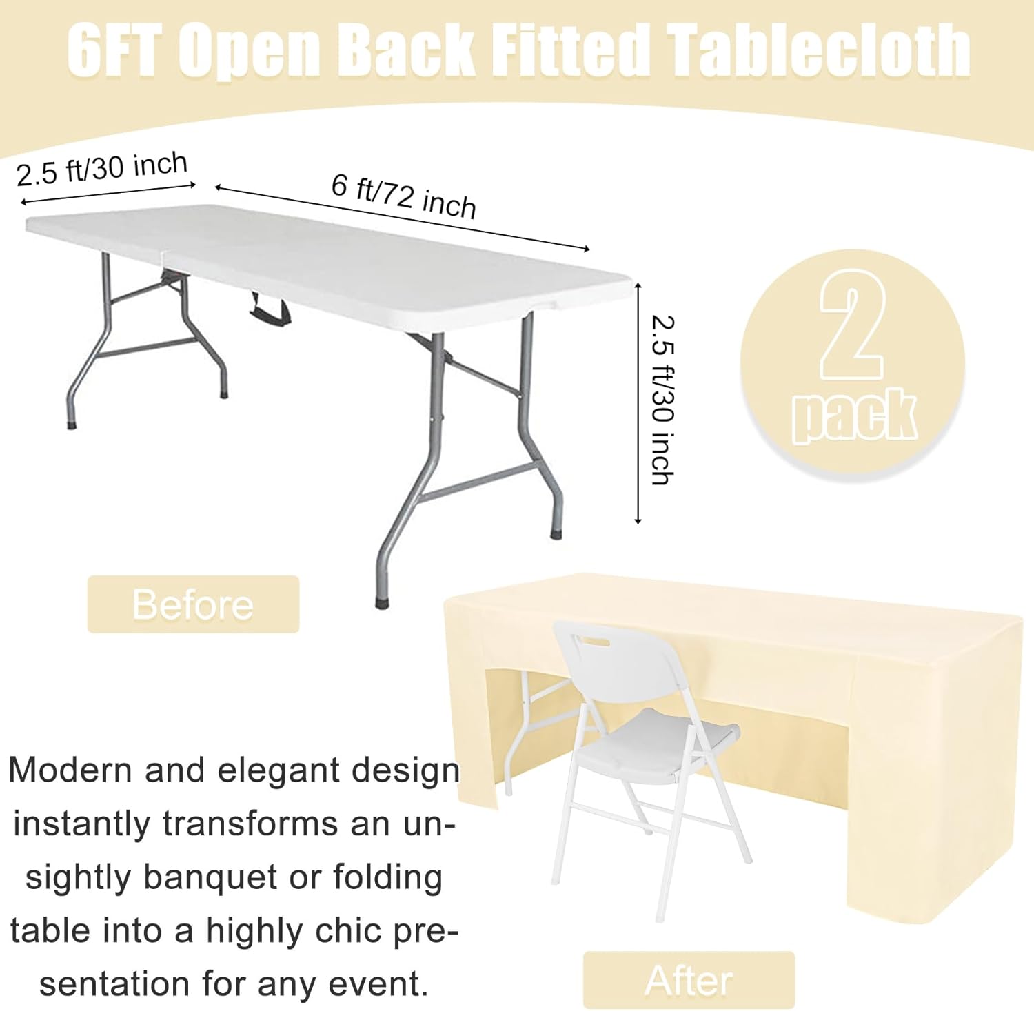 2 Pack Open Back Fitted Rectangle Tablecloths 72 x 30 Inch, Beige Table Clothes for 6 Foot Tables, Washable Polyester Fitted Table Cover for Parties, Wedding, Banquet, Trade Show (Beige, 6FT)