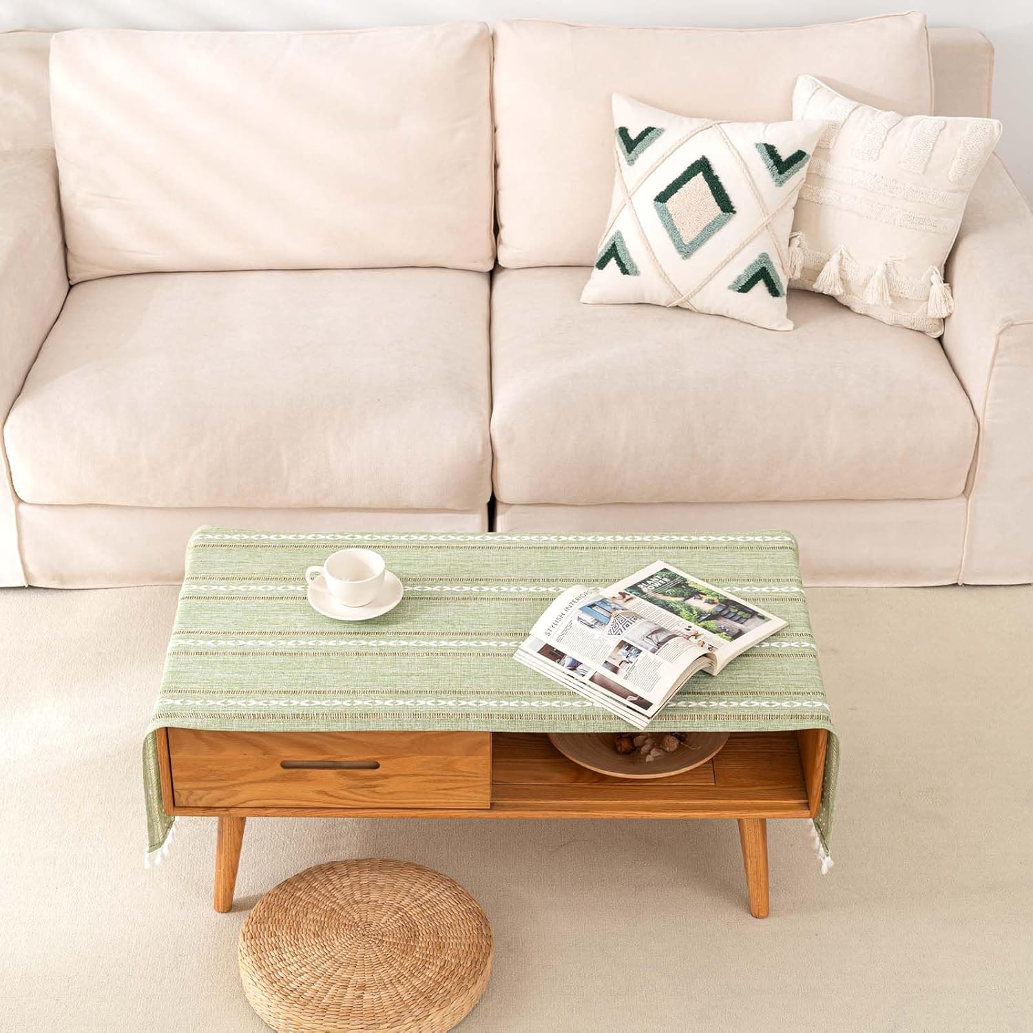 - High Quality Fabric: Coffee table cloths are made of cotton and linen blended fabric, fabric soft and comfortable, touch smooth, table cloth with tassels decor, with a good dropping effect, It is the best choice for rectangular tables and coffee tables.