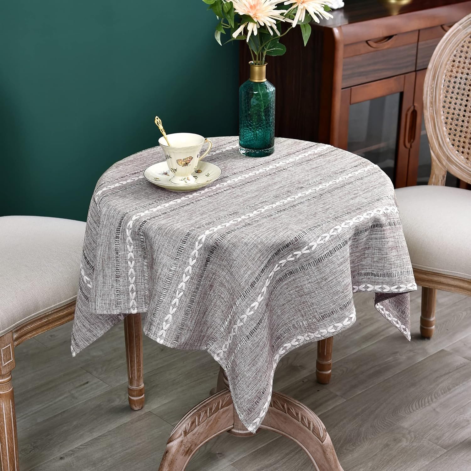 Rustic Farmhouse Embroidered Small Square Tablecloth Jacquard Striped Table Cloth Linen Washable Fabric Side Table Cover Kitchen Dining Home Decoration (Coffee, 36×36 inch)