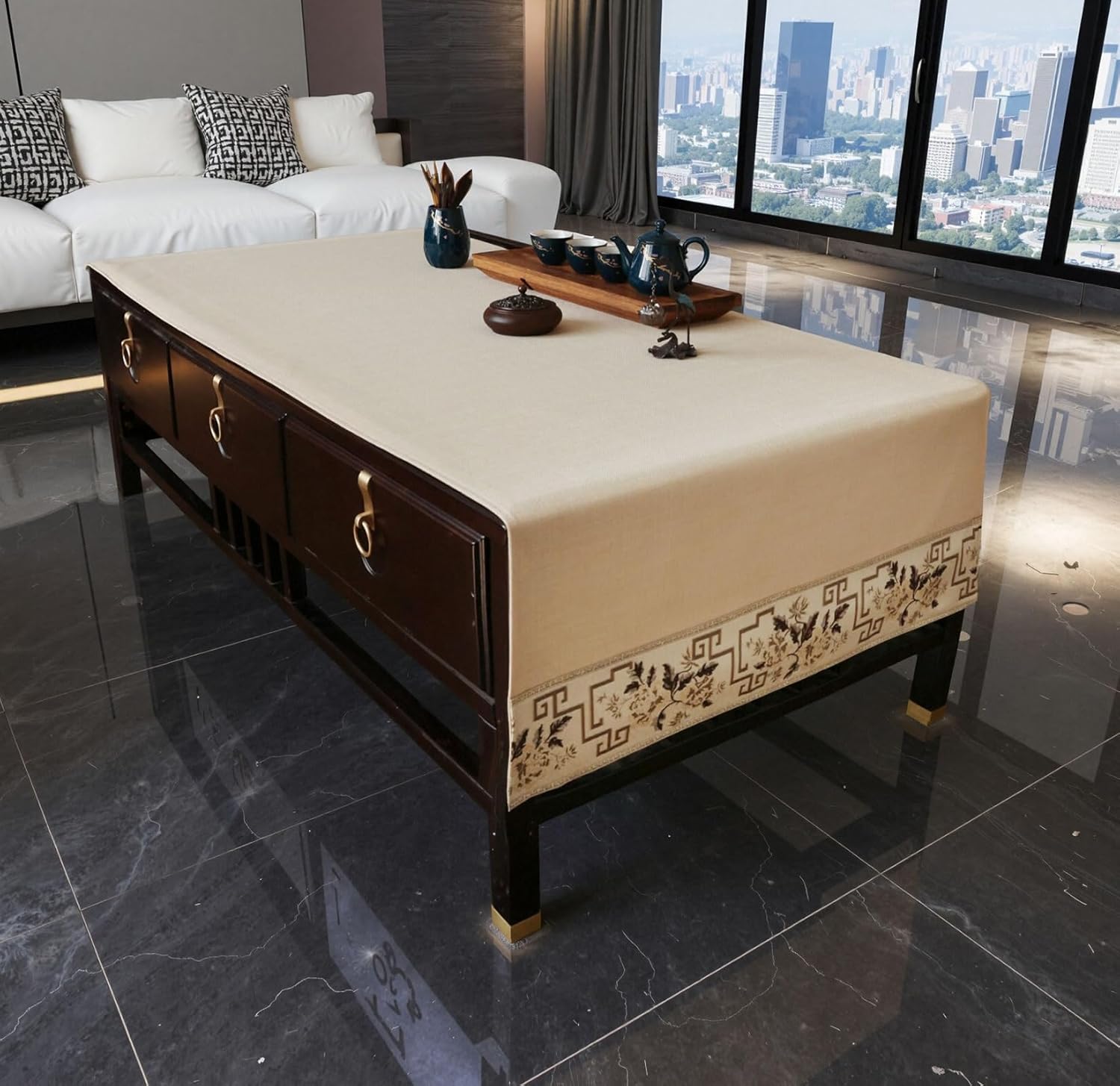 Traditional Feature Coffee Table Cover Rectangle with Embroidered Flowers.Beige Coffee Table Cloth and Tea Table Runner for Living Room,Machine Washable and Dryable(57″ L x 19.7″ W)